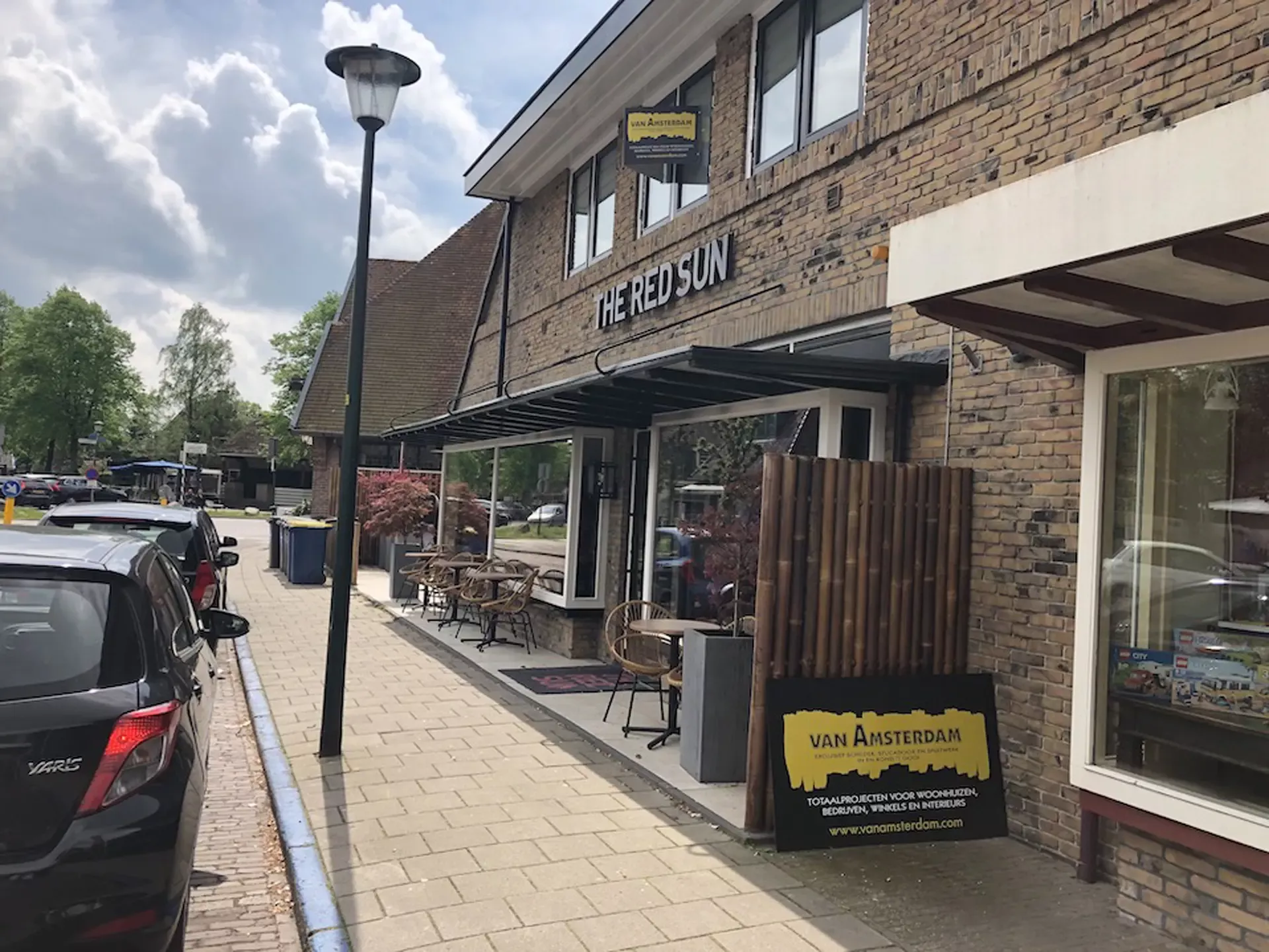 In Blaricum zit restaurant The Red Sun waar wij al 10 jaar het onderhoud voor verzorgen. Na de grote verbouwing 2 jaar geleden worden nu alle deuren, kozijnen, plinten en palen opnieuw geschilderd zodat het mooi nieuw blijft. Buiten gaan we het terras zomerklaar maken en wordt alles opnieuw geschilderd. Ook de prachtige bamboe afschijding wordt met hooglans kleurlak weer op kleur gemaakt.